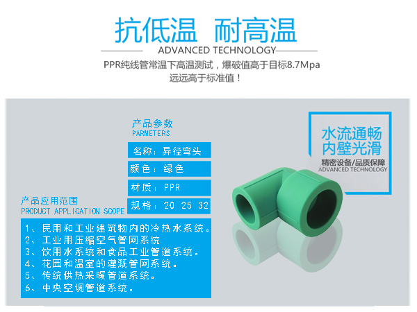 □ 管件連接牢固:由于聚丙烯具有良好的熱熔接性能,熱熔連接將同種材料制造的管材和管件連接成為一個(gè)整體,杜絕了漏水的隱患。
